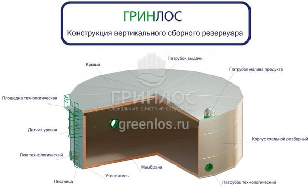 - Технический паспорт «ГРИНЛОС Резервуар стальной наземный»;