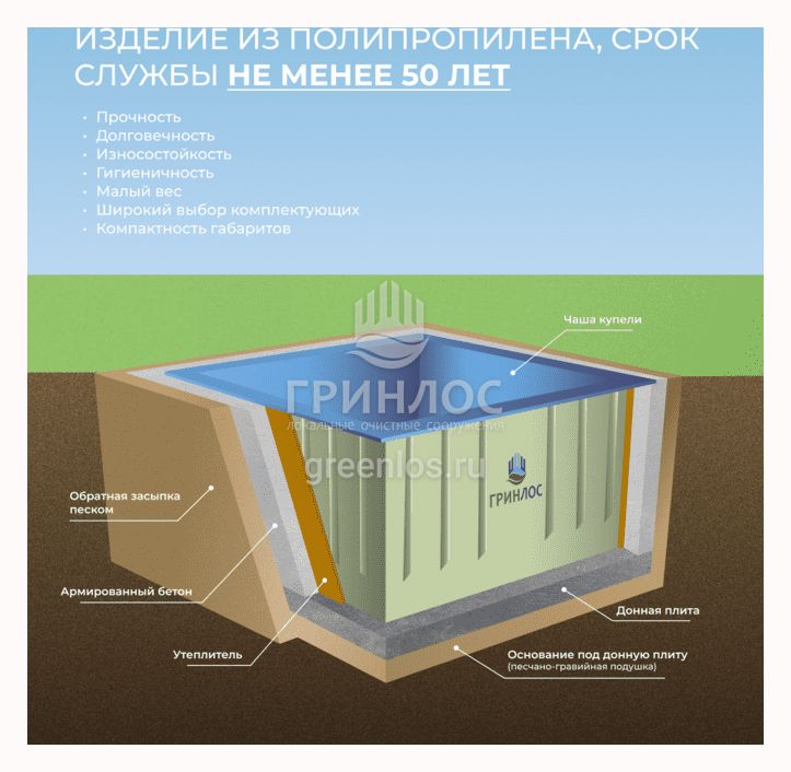 Преимущества ГРИНЛОС Купель 1200*1000*1500 Прямоугольная