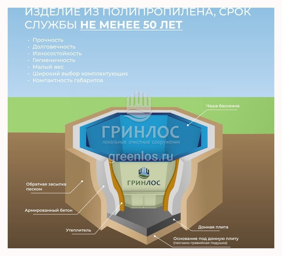 Преимущества ГРИНЛОС Купель 2000*2000*1000 Восьмиугольная