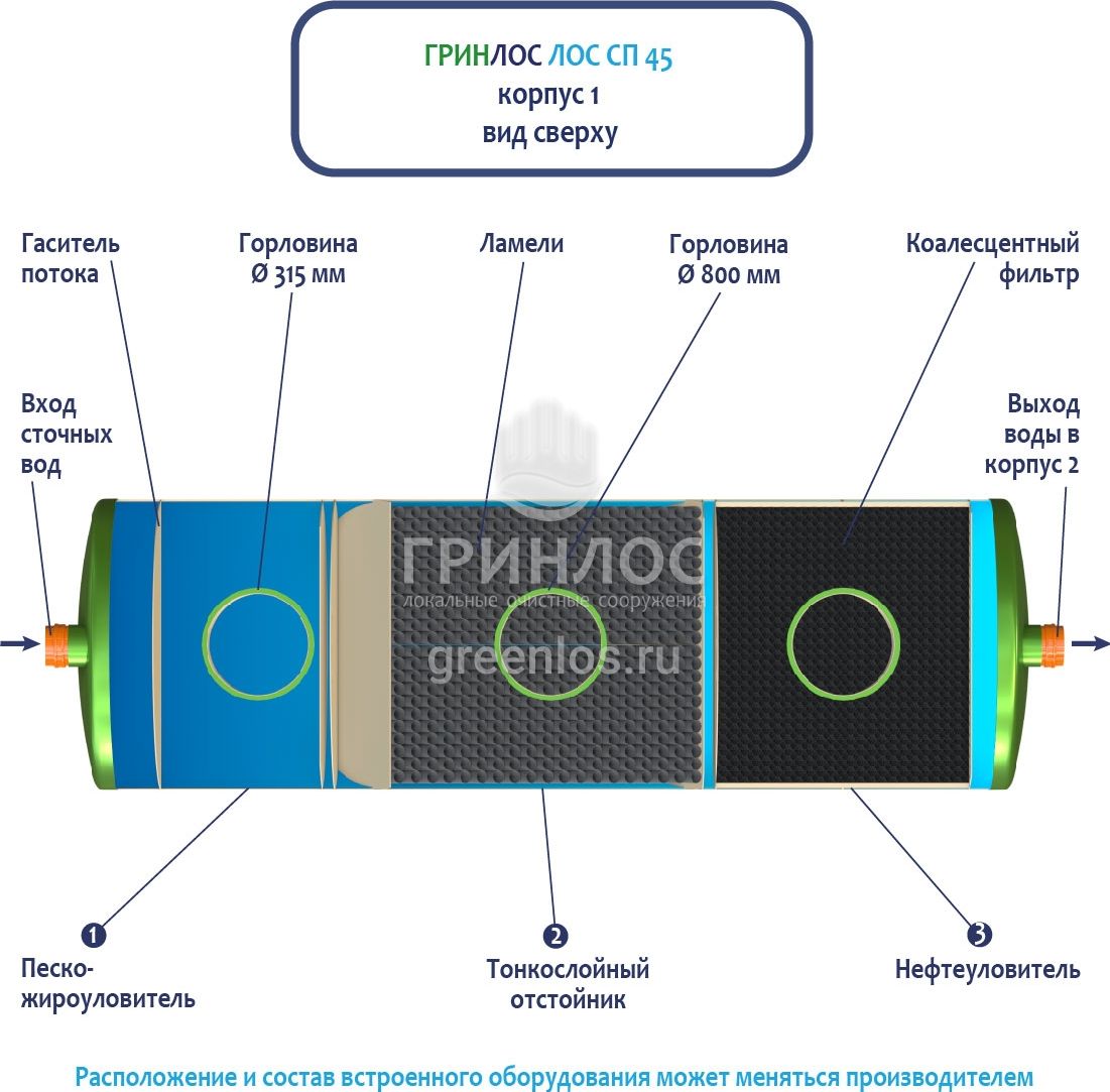 Гринлос ГРИНЛОС Ливневая канализация 45-2300-2 стеклопластиковая - Внутреннее устройство корпусов 1 и 2, вид сверху