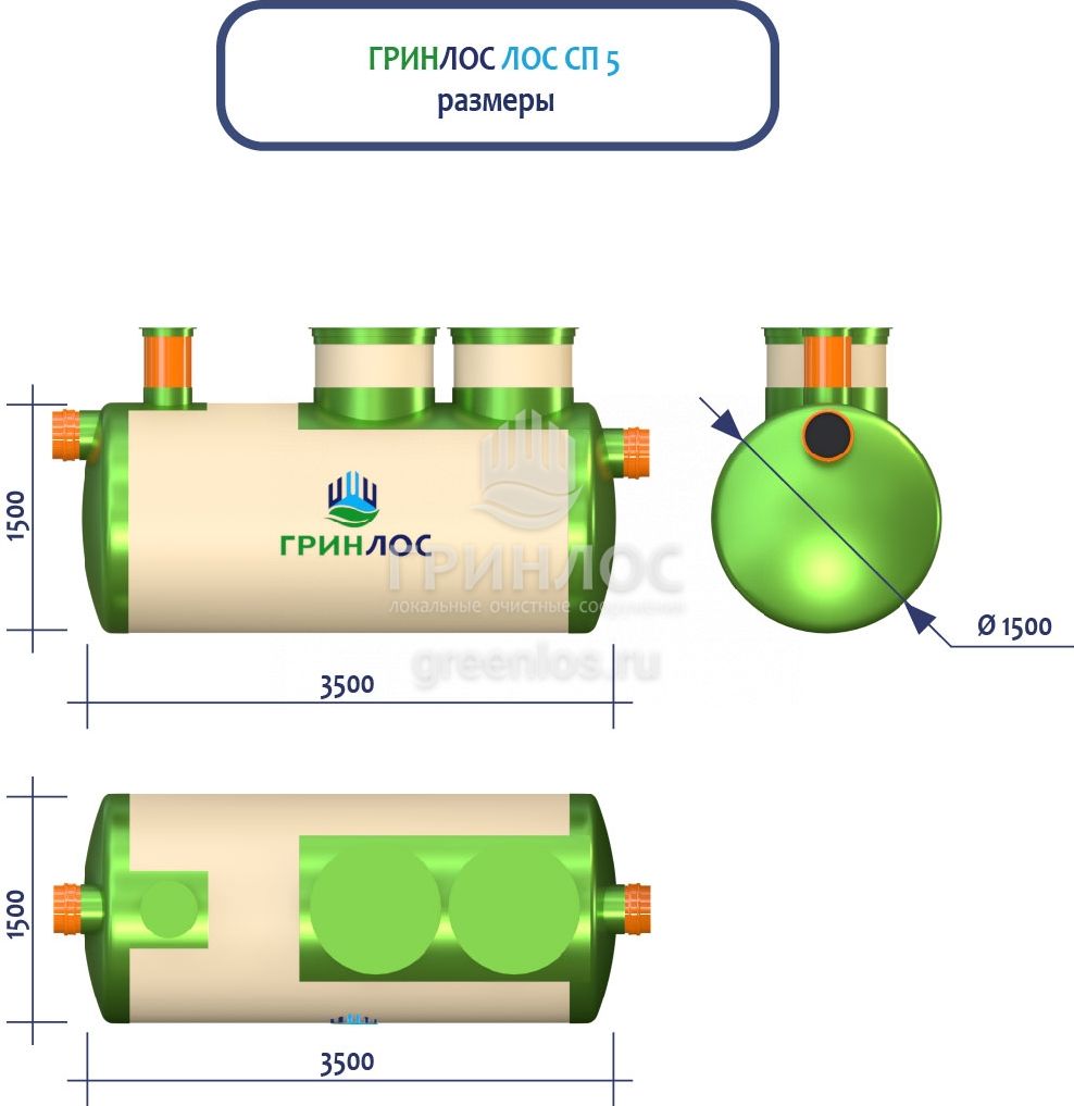 ГРИНЛОС Ливневая канализация 5-1500 стеклопластиковая представляет собой очистное сооружение ливневых стоков габаритами 3500*1500*1500 - 1 корпус. Общий объем корпусов составляет 6.2 м3. Для установки станции потребуется применение вспомогательного оборудования.
