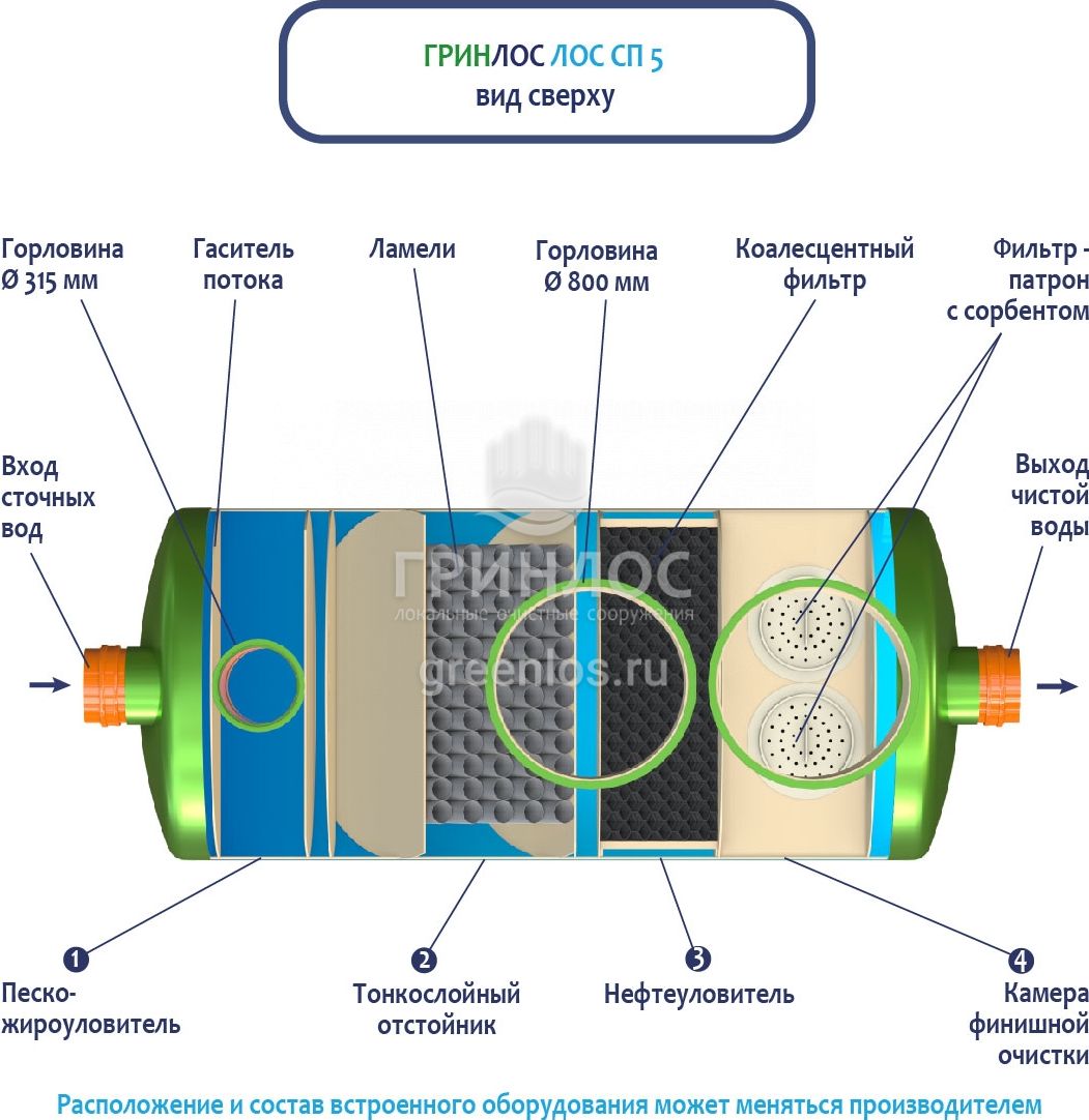 В базовую комплектацию Ливневой канализации Гринлос входит нефтеловушка, которая работает по принципу отстаивания стоков
