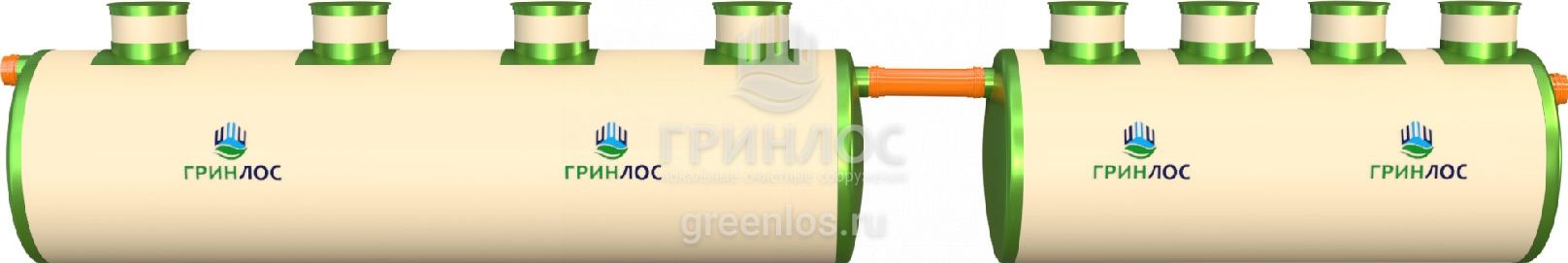 - Корпус «ГРИНЛОС Ливневая канализация 60-2300 стеклопластиковая» (укомплектован крышками)