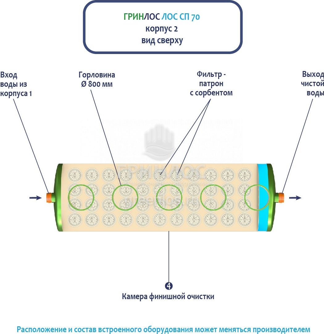 Гринлос ГРИНЛОС Ливневая канализация 70-2300 стеклопластиковая - Внутреннее устройство корпусов 1 и 2, вид сверху