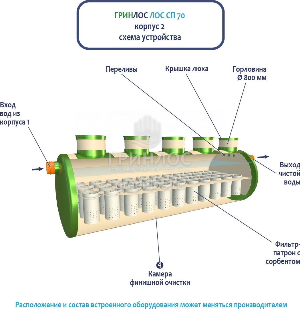 Гринлос ЛК 70-2300 Сп выполнена из стеклопластика – инертного материала, устойчивого к агрессивным средам.