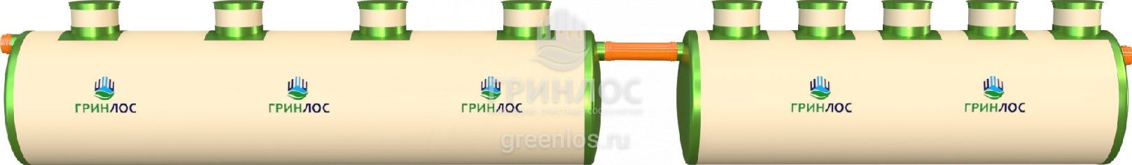 - Корпус «ГРИНЛОС Ливневая канализация 70-2300 стеклопластиковая» (укомплектован крышками)