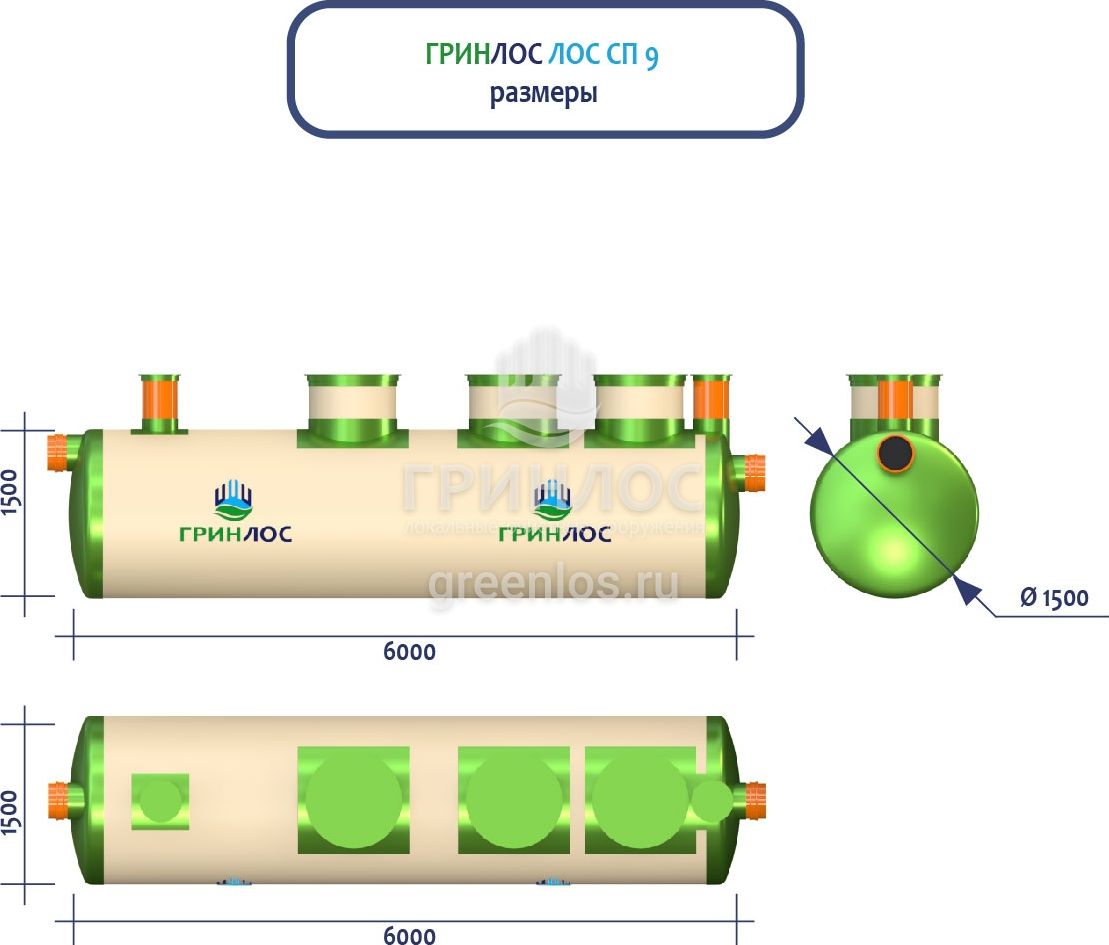 ГРИНЛОС Ливневая канализация 9-1500 стеклопластиковая представляет собой очистное сооружение ливневых стоков габаритами 6000*1500*1500 мм - 1 корпус. Общий объем корпусов составляет 10.6 м3. Для установки станции потребуется применение вспомогательного оборудования.