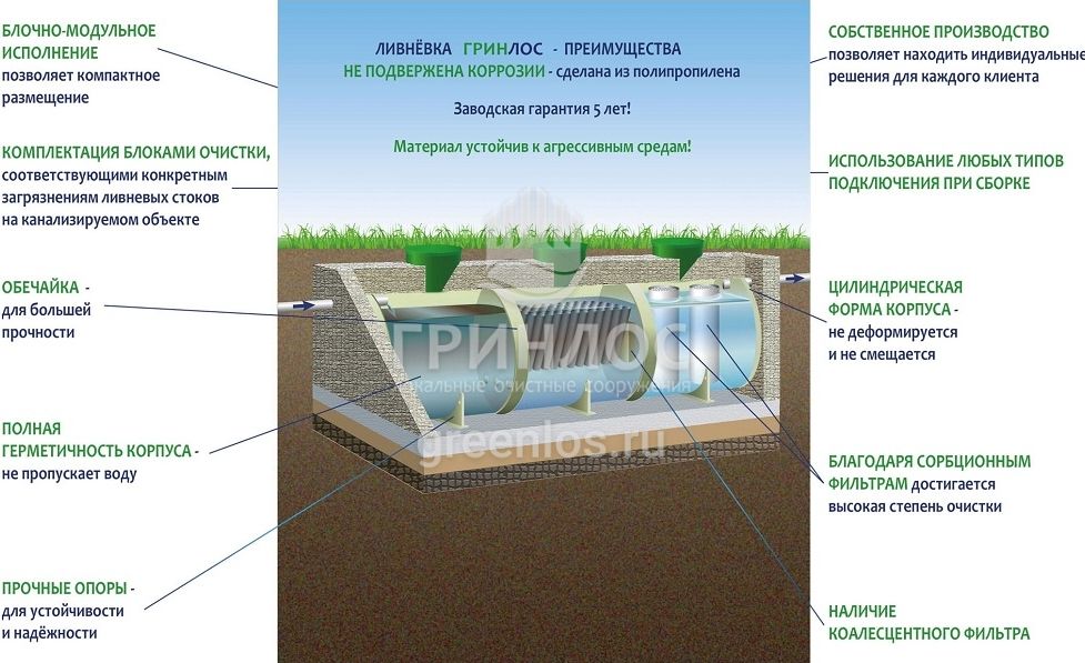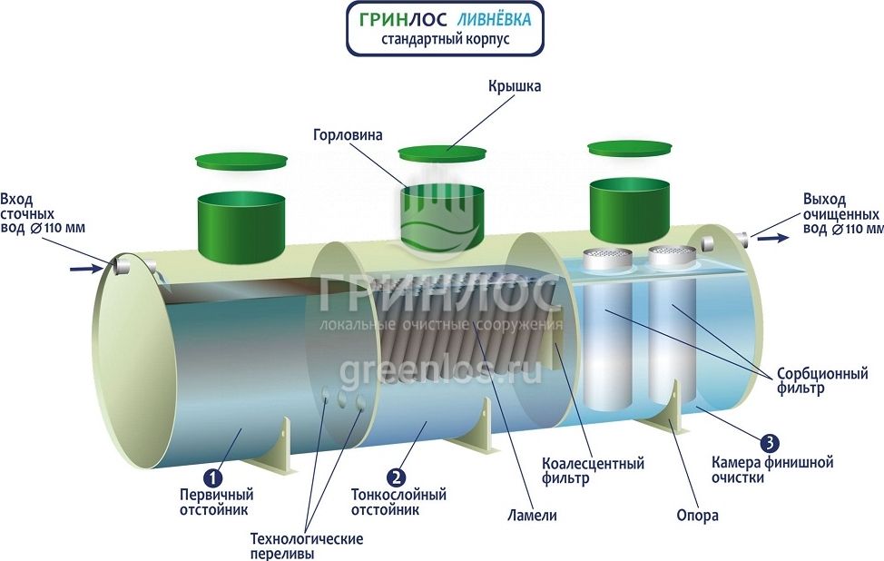 Принцип работы и внутреннее устройство ГРИНЛОС Ливневая канализация М120