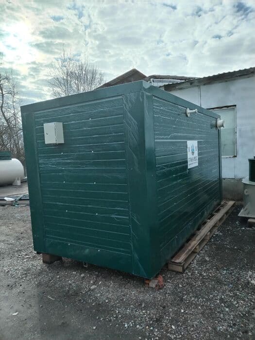Станция представляет собой утепленный металлический контейнер, внутри которого установлен полипропиленовый модуль, разделенный на технологические отсеки: