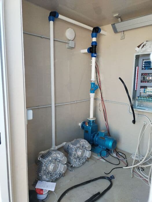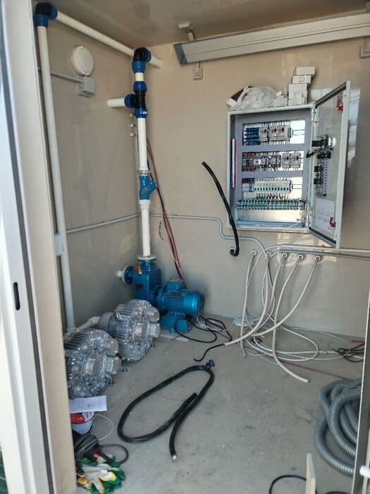 В сухой камере обслуживания размещены элементы управления, насосы и электрооборудование. Избыточный ил собирается и удаляется через систему стабилизации, а для стабильной работы зимой действует система обогрева.
