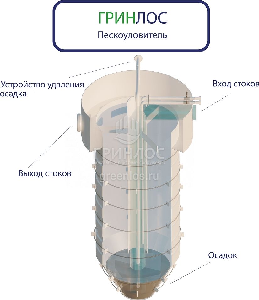 Внутреннее устройство и принцип работы песколовок Гринлос 10 л/с