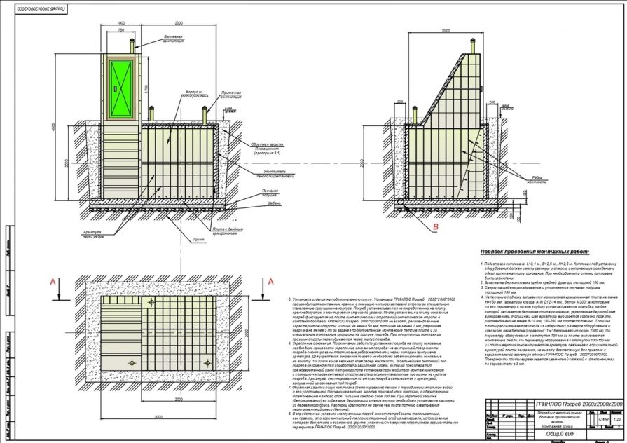 При условии уровня грунтовых вод выше 1500 мм от уровня земли, при наличии плывуна, при монтаже в скальных грунтах и прочих нестандартных ситуациях, а также при монтаже Гринлос Погреб ДТБ 2000*2000*2000 под зданиями, сооружениями, любыми постройками и при организации пешеходной или проезжей зоны над Гринлос Погреб ДТБ 2000*2000*2000, в случае заглубления Гринлос Погреб ДТБ 2000*2000*2000 более чем на 250 мм от верхнего пластикового горизонтального перекрытия до запланированного после проведения финишного благоустройства уровня земли песчано-цементную смесь не-обходимо заменить бетоном, а непосредственно над верхним пластиковым горизонтальным перекрытием Гринлос Погреб ДТБ 2000*2000*2000 необходимо смонтировать разгрузочную плиту, опирающуюся на бетонные стенки, возведенные по периметру устанавливаемого Гринлос Погреб ДТБ 2000*2000*2000, опирающиеся на выпуск плиты основания. Расчет толщины и конструкции стен и разгрузочной плиты производит специализированная проектная организация исходя из предполагаемой нагрузки.