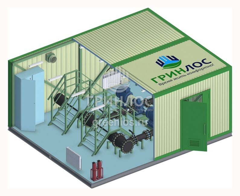 Прочный павильон защищает нефтеперекачивающую насосную станцию НпС 80-95 от механических и климатических воздействий, обеспечивая долговечность конструкции.